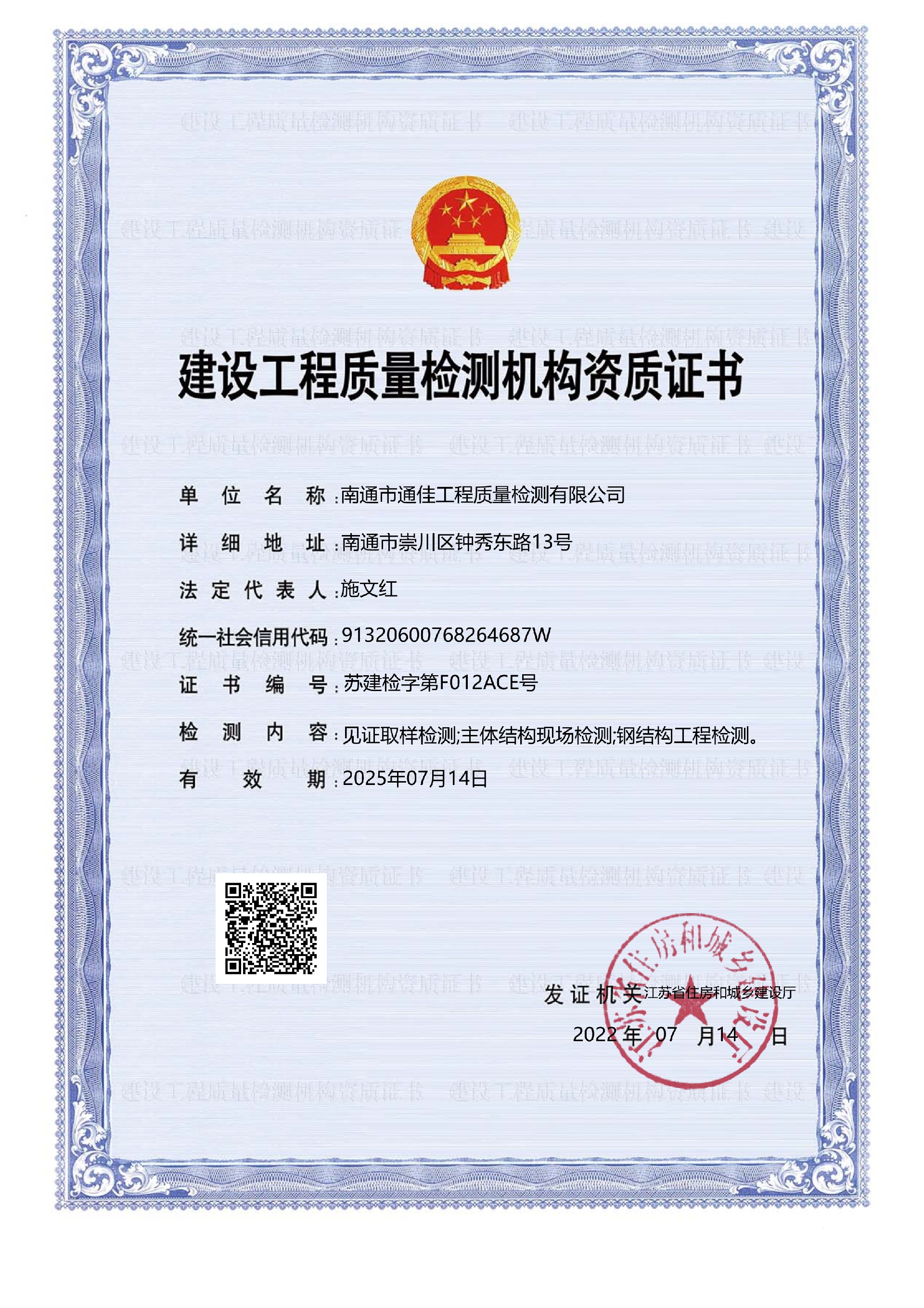 南通市通佳工程質(zhì)量檢測(cè)有限公司是于2004年11月16日依法注冊(cè)成立的第三方獨(dú)立法人檢驗(yàn)檢測(cè)機(jī)構(gòu),其前身為成立于1958年的南通市市政工程處試驗(yàn)室。